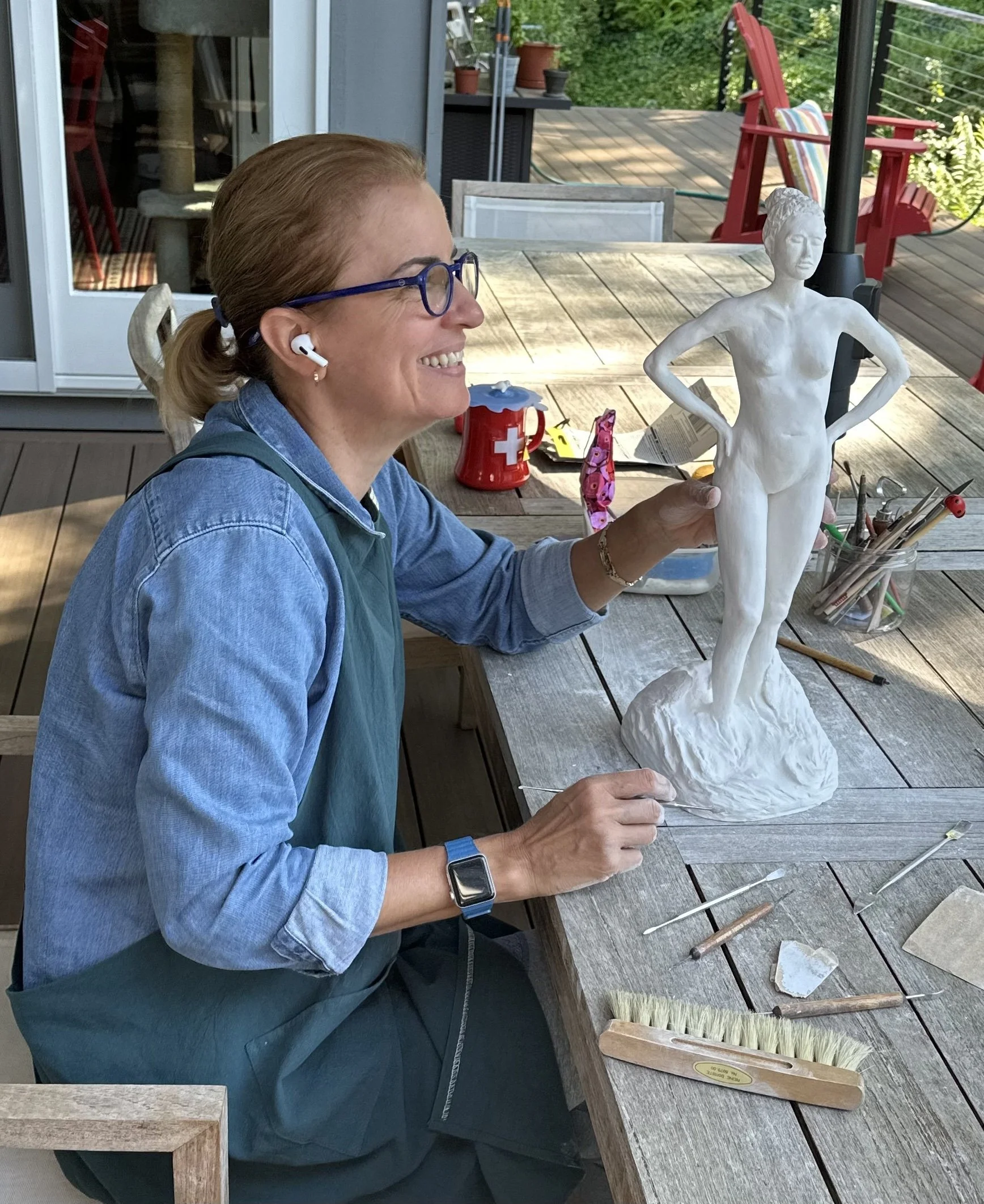 Her architectural training sharpened her sensitivity to balance, proportion, and space, qualities that later translated into jewelry design. After building and leading a successful jewelry business grounded in precision and craftsmanship, she felt compelled to return to a more physical and expressive medium. Sculpture became a natural evolution.